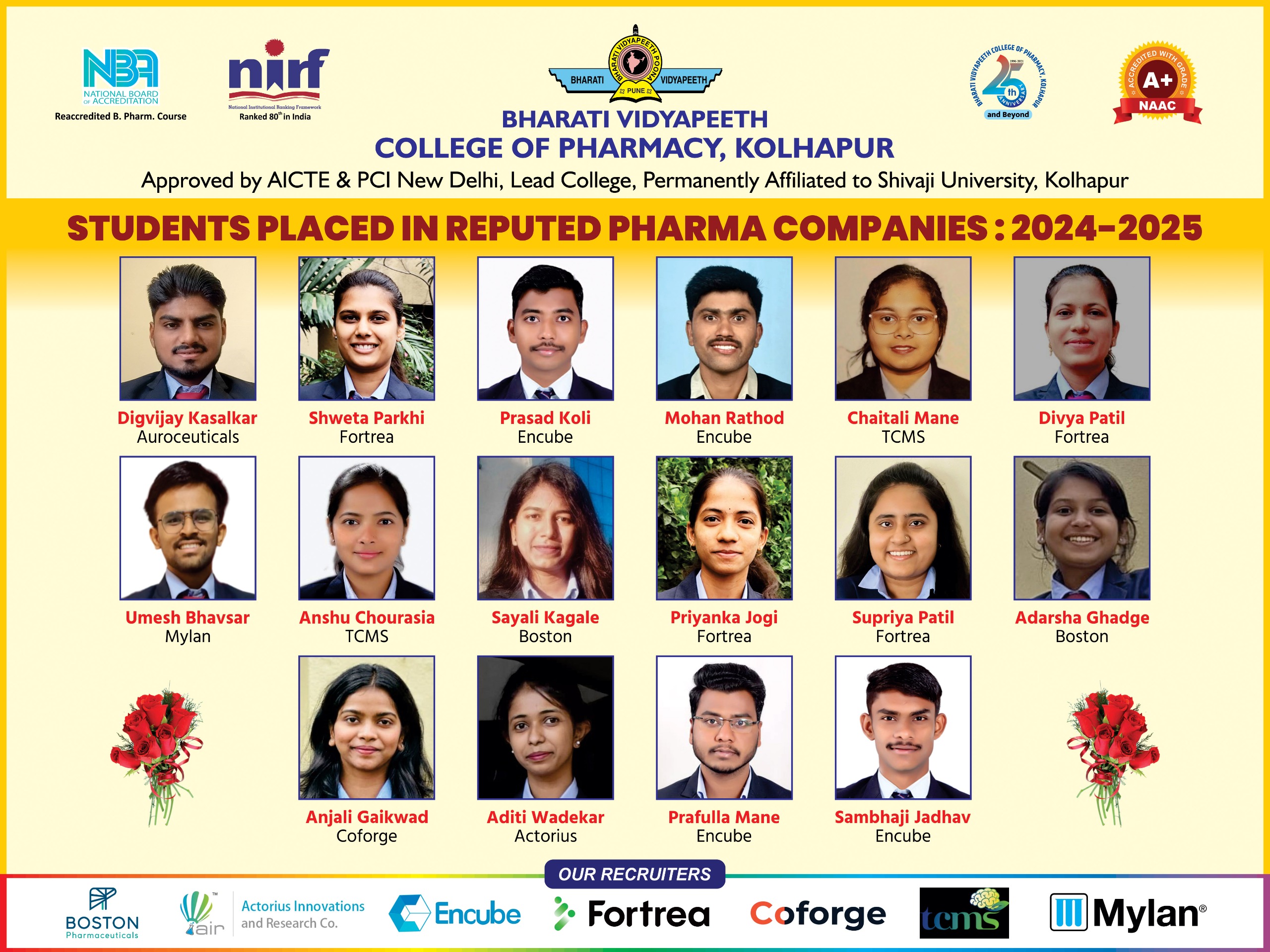 The spacious college building, the laboratories,rich and resourceful library and all the amenities took shape under the able and dynamic guidance of Dr. Shivajirao Kadam, Chancellor, Bharati Vidyapeeth Deemed University, Pune and who pioneered and lead the foundation of pharmacy education in the University of Pune by setting up Poona College of Pharmacy Pune. As quoted by some eminent personalities in the Pharma-profession the pharmacy college building is in the reckoning as one of the best planned pharmacy college buildings in Asia. With persistent guidance from Honorable Vishwajeet Kadam, Secreatry, Bharati Vidyapeeth Pune, college has developed into one of the best pharmacy institutes in the state.